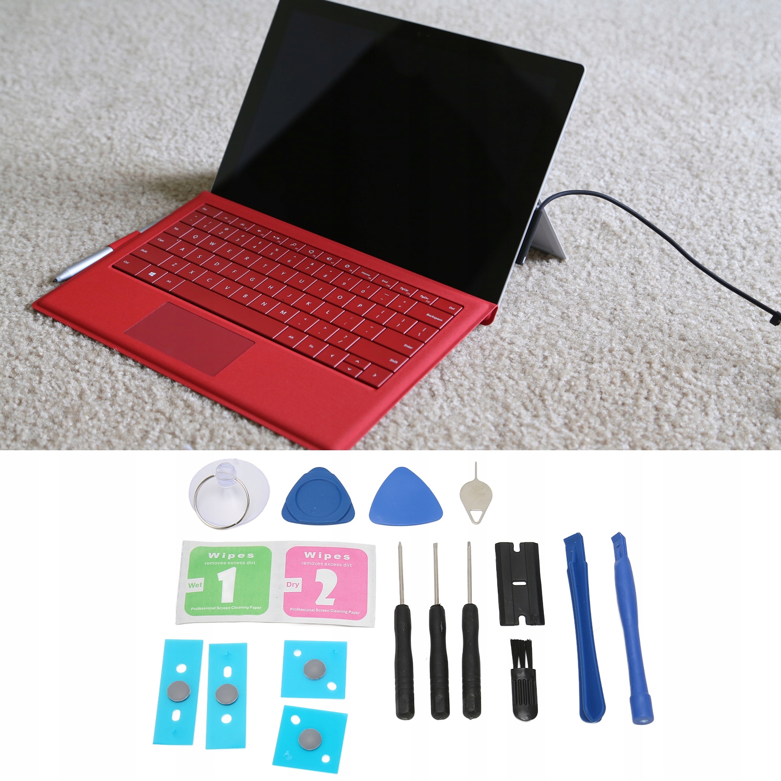 2. Набор инструментов: эти подушки для ног поверхностного ноутбука поставляются с набором инструментов установки, включая отвертку, всасывающую чашку, дюйвер выброса, кисть и подъемник и т. Д.