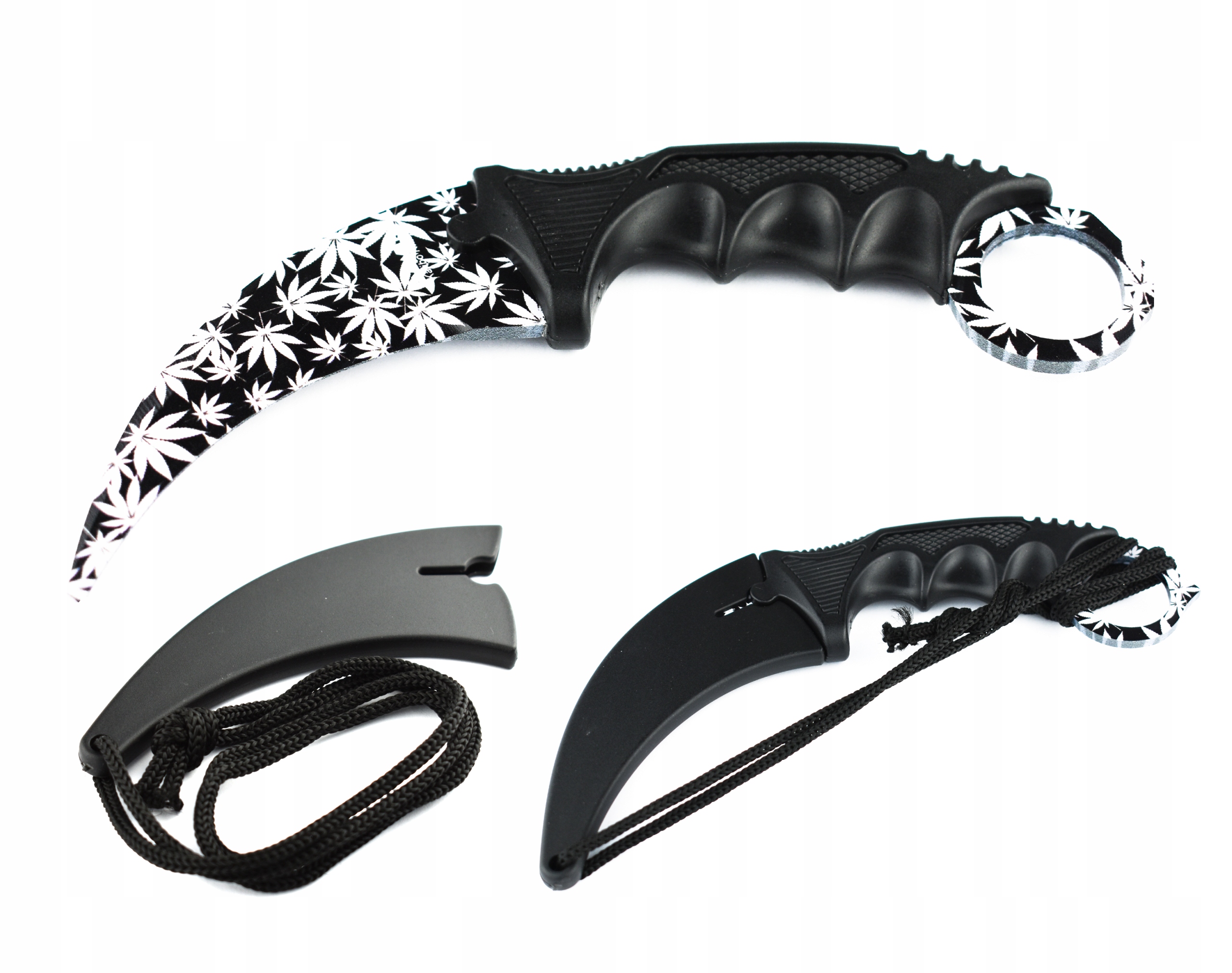 Нож керамбит происходит из игры CS:GO, отличается изогнутым лезвием и ручка с отверстием для накид.