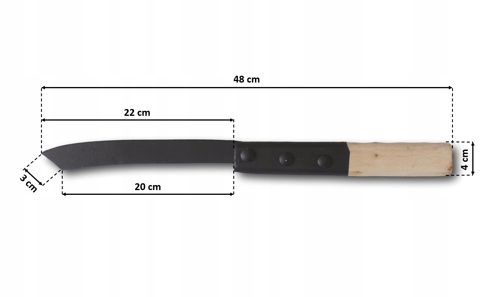 Нож, сделанный из листа C45 толщиной 3 мм. Кованый, отполированный и закаленный лезвие.