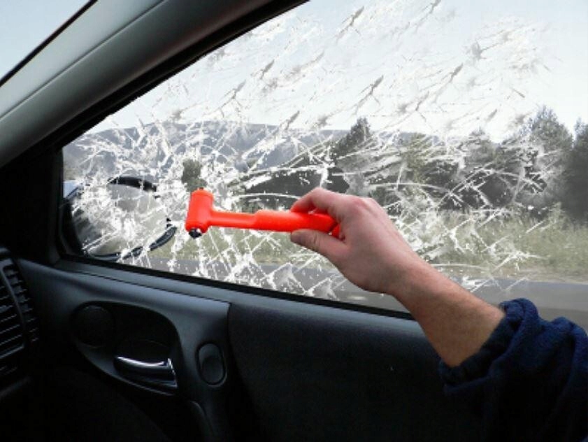 Специально разработанный наконечник молотка легко разбивает стекла автомобиля изнутри и снаружи.