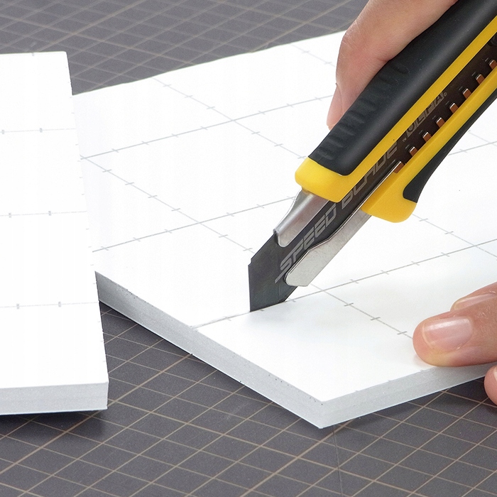 Лезвия OLFA чрезвычайно острые. Будьте особенно осторожны при резке и замене лезвия. Использованные лезвия также могут быть опасны — прежде чем их выбрасывать, защитите их, например, с помощью контейнеров, в которых поставляются новые лезвия, или используйте специальные контейнеры DC-2 и DC-4.