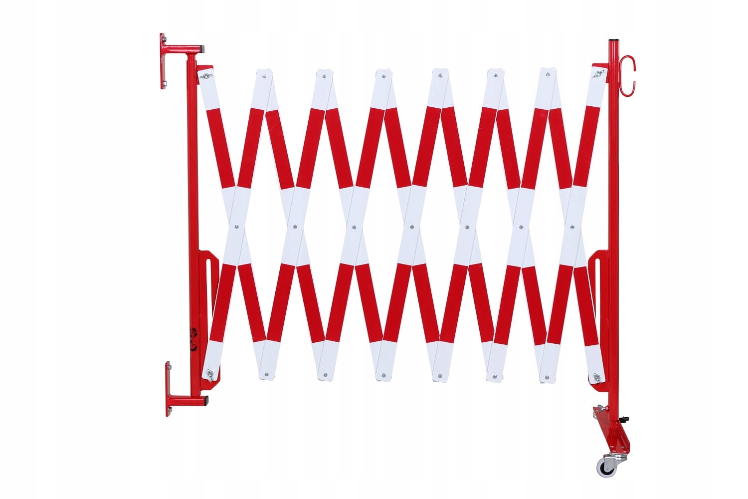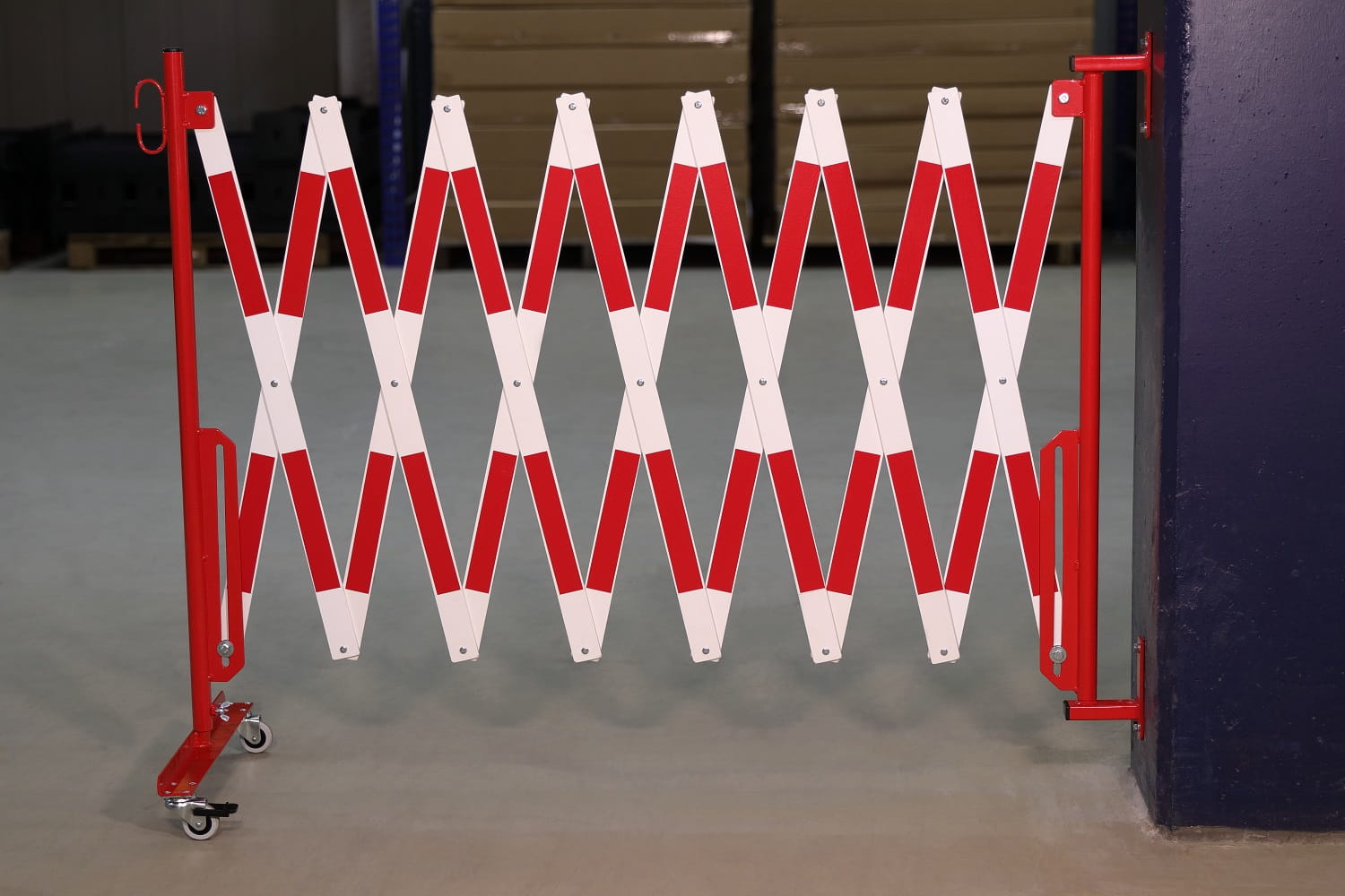 Складной ножничный барьер – настенный, на колесах 400 см TÜV – белый и красный