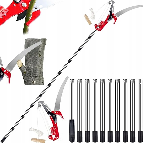 Это садовое устройство с регулируемой длиной 82-448 см, позволяющее обрезать более высокие ветки без лестницы 🌳. Лезвие из углеродистой стали SK5 длиной 33 см остается острым, а легкая конструкция из пластика и резины обеспечивает удобный захват 💪.