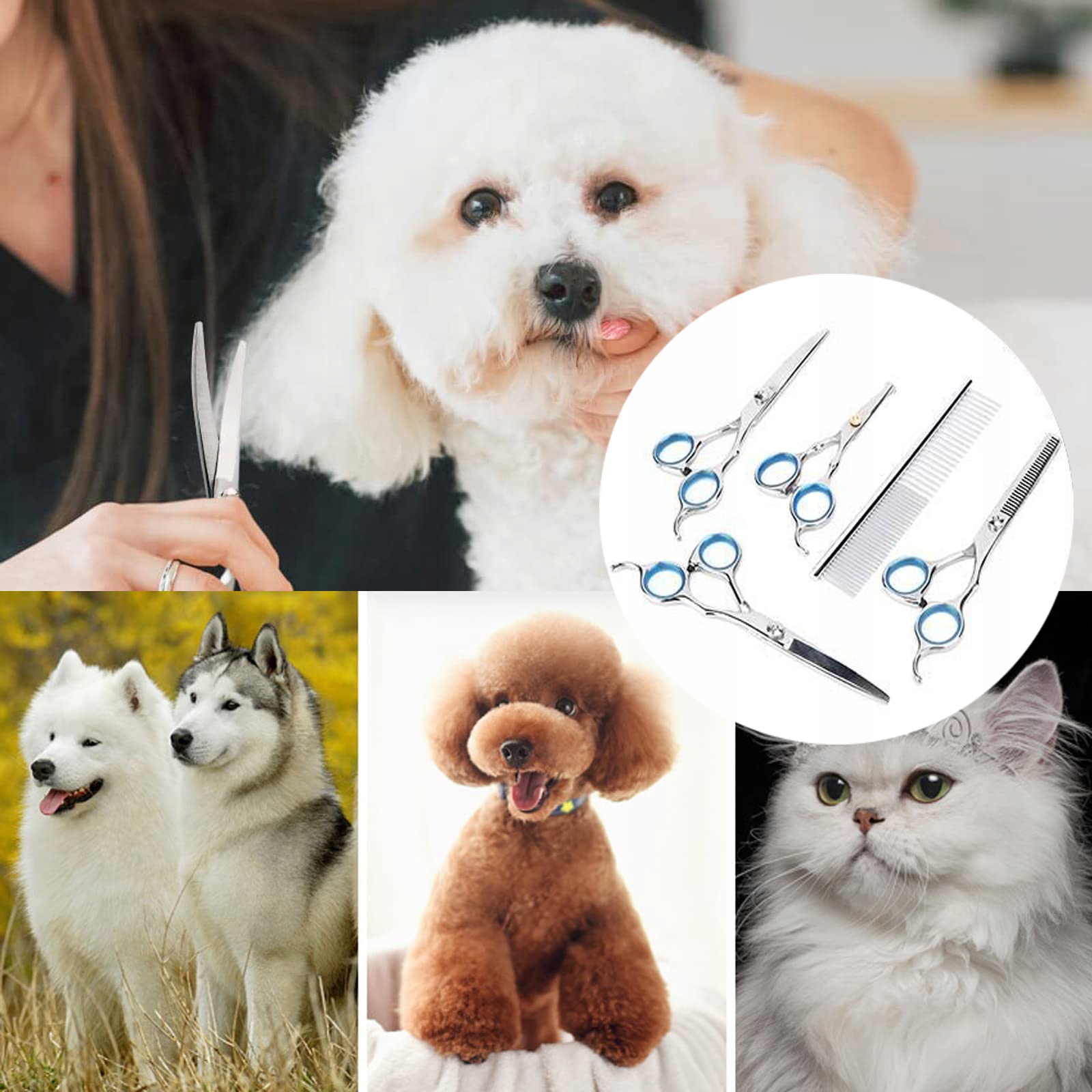✨✨ 【круглые концы более безопасны】 у наших собачьих ножниц есть закругленные наконечники, поэтому вам не нужно беспокоиться о том, что ножницы по уходу случайно поражают вашего питомца, особенно если вы заботитесь о чувствительных областях, таких как лицо, глаза, нос, уши и лапы. Ножницы для волос с собаками имеют эргономичную форму, чтобы удобно адаптироваться к руке, так что вы можете уменьшить усталость и боль во время использования. Специально разработанный для вашего питомца, профессиональный набор собачьих ножниц - это полностью оборудованный, красивый набор профессиональных ножниц для собак подходит для всех ваших потребностей в уходе за домашними животными и идеально подходит для использования дома.
