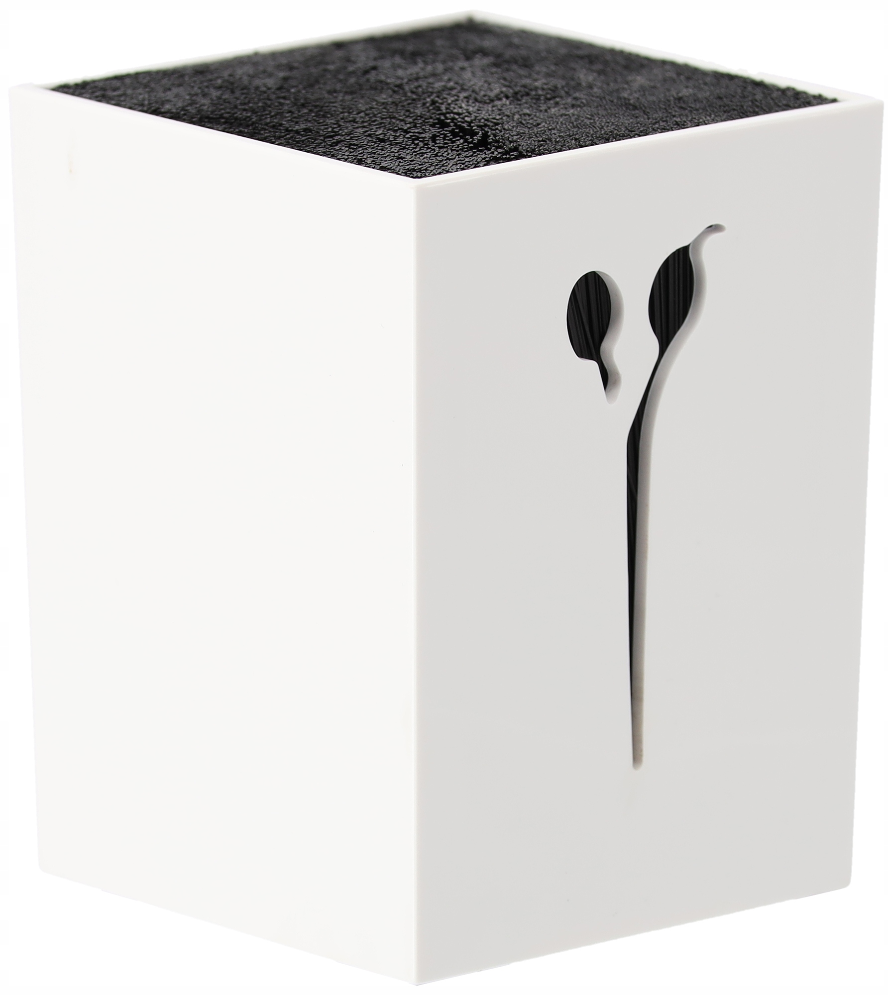 Преимущество этого изделия в том, что ножницы можно вставить в любое место горшка благодаря нейлоновым ворсам, которые не повреждают корпус ножниц.