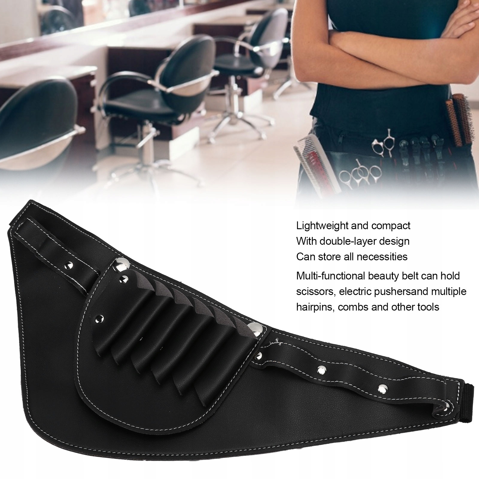 4. Многофункциональный ремешок для красоты может вместить ножницы, электрический толкатель и множество зажимов для волос, расческа, расческа и другие инструменты.