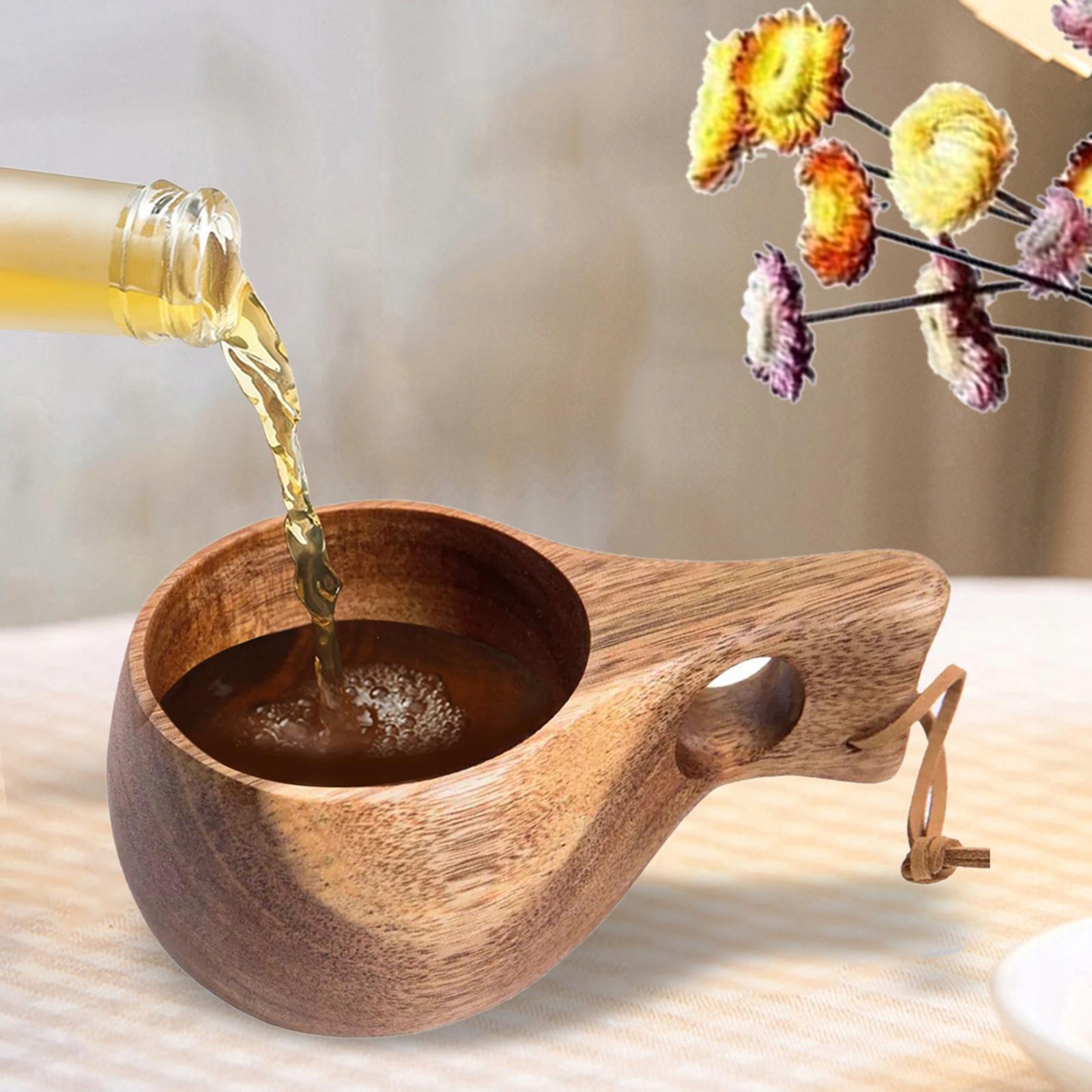 Деревянная кружка для питья, кружка для чая, кофе, молока для дома, кухни, походов, кемпинга, темно-коричневая, гладкая