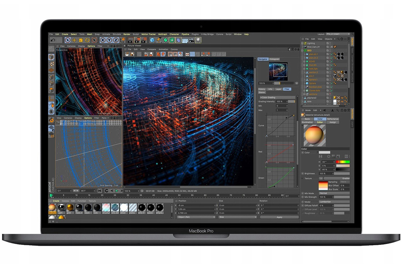 Новый MacBook Pro оснащен очень хорошим экраном. Благодаря мощной светодиодной подсветке и более высокой контрастности он обеспечивает глубокий черный и чистый белый цвета. Большая полезная площадь пикселей в сочетании с переменной частотой обновления помогает снизить энергопотребление. Кроме того, предоставляется широкий спектр цветов, позволяющий отображать интенсивные оттенки красного и зеленого. Благодаря этим улучшениям изображения становятся более реалистичными и богатыми в деталях. Это особенно важно в таких областях, как графический дизайн, цветокоррекция и монтаж видео.