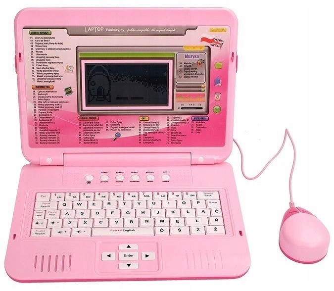 Образовательный ноутбук - это интерактивная игрушка для детей. Он характеризуется реалистичным внешним видом, смоделированным на настоящем ноутбуке. Это дает доступ к нескольким дюжинам программ, включая образовательные игры и полезные повседневные функции. Ноутбук изготовлен из розового пластика. Имеет дисплей, клавиатура, встроенные в динамики и даже мышь для еще более точной работы.