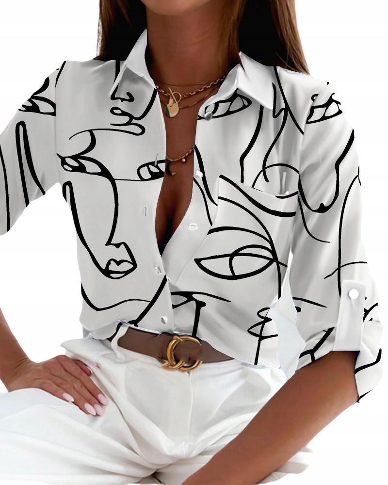 Модная женская блузка элегантная летняя рубашка пуговицы узоры цвета