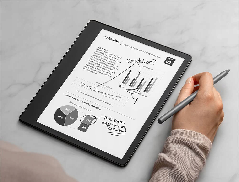 Пишите и читайте так же естественно, как на бумаге: устройство оснащено первым в мире дисплеем Paperwhite с антибликовым покрытием диагональю 10,2 дюйма и разрешением 300 пикселей на дюйм, а также оснащено стилусом премиум-класса.