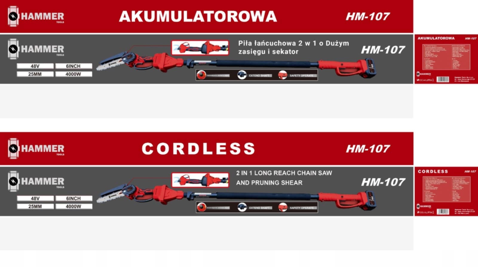 Мега Hammer 2in1 Sat Chain Saw с смазкой h1> обрезка ножниц и бум 2,5 м h1> батарея 2 x 48 В 5AH + зарядное устройство h1>
