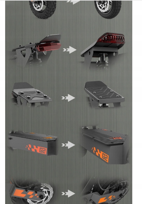 Она оснащена механизмом складывания в одно касание, который позволяет складывать и раскладывать подставку всего за несколько простых шагов. В сложенном виде ремень на передней части Транспортного средства можно прикрепить к нижней пластине, где расположен задний фонарь, чтобы надежно зафиксировать раму и предотвратить случайное раскладывание во время транспортировки, обеспечивая тем самым безопасность и устойчивость пользователей при перемещении Транспортного средства.