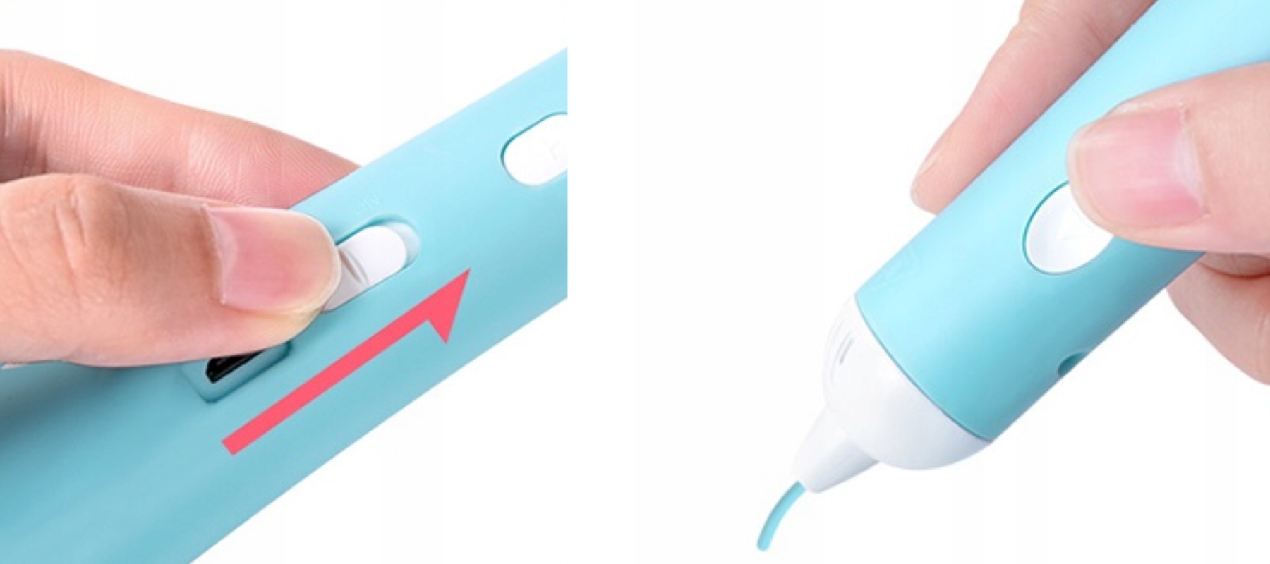 - Просто поместите вставку в соответствующий контейнер и нажмите кнопку, чтобы нагреть устройство. Через несколько секунд вы сможете создавать фигуры.