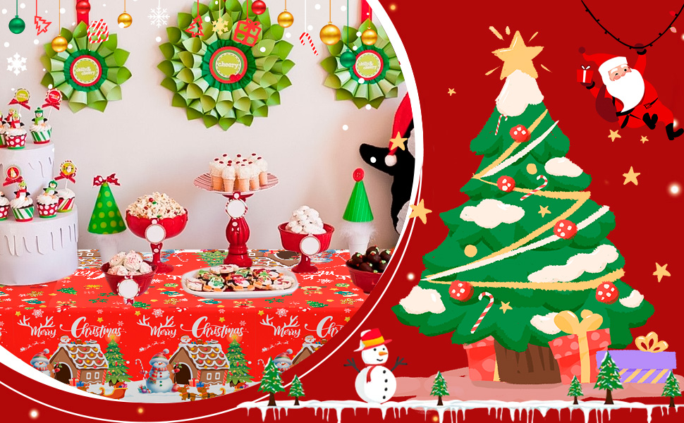 - Высококачественные материалы: прямоугольник рождественской скатерти изготовлен из высококачественных материалов, которые нелегко сломать и которые можно использовать в течение длительного времени на вечеринке с рождественскими украшениями.