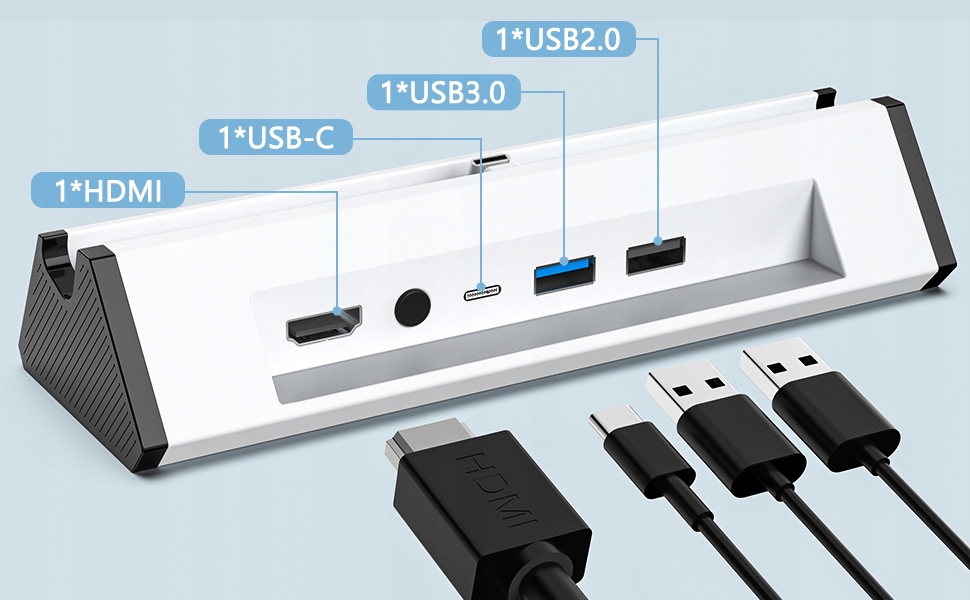 【Доступно несколько портов】Эта док-станция Switch TV имеет 1 порт HDMI, 2 порта USB, 1 кнопку переключения, 1 входной порт USB — C и 1 выходной порт типа C.