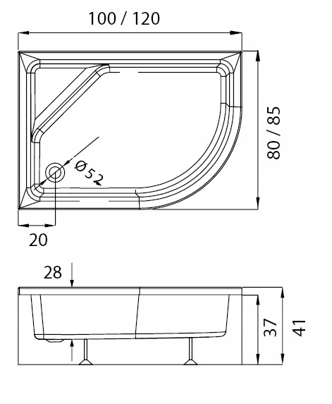 NT NEW Кабіна VARIA 100X80 асиметричний висувний піддон MAXIMA глибокий L