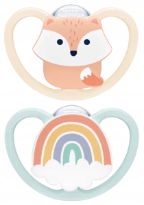 Соска NUK Space оснащена новой, лучшей на сегодняшний день резинкой NUK. Уникальная форма NUK повторяет форму соска матери во время кормления и способствует здоровому развитию ротовой полости ребенка.