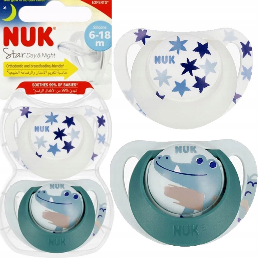 NUK ЗАСПОКІЙЛИВА СОСКА 6-18м STAR 2шт ДЛЯ ХЛОПЧИКА + ЧОХОЛ СВІТИТЬСЯ ВНОЧІ