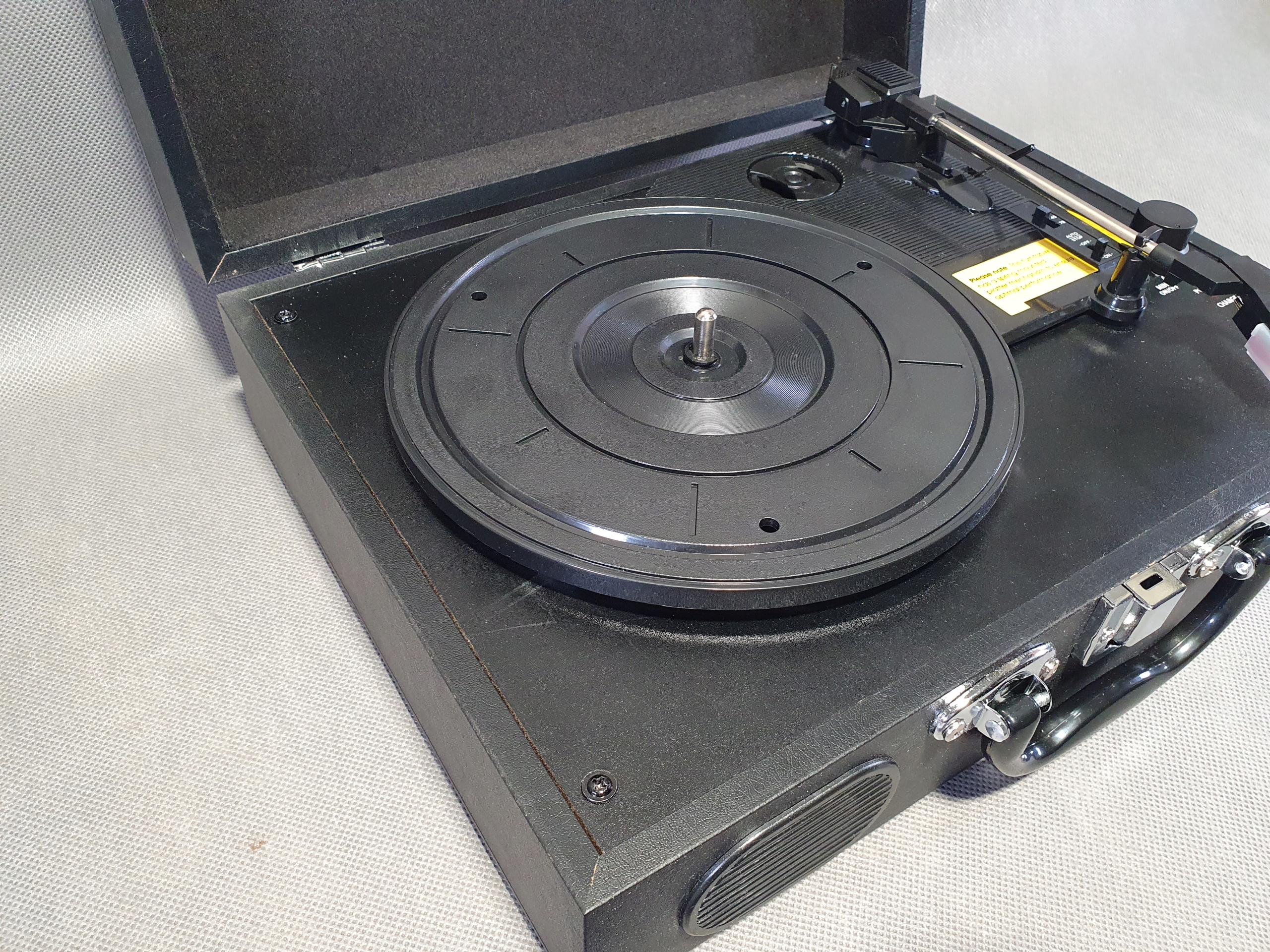 Его корпус выполнен из прочного материала, а удобная ручка обеспечивает удобство транспортировки. Проигрыватель проигрывает в режимах 33 1/3, 45 и 78 об/мин, а в комплект входит адаптер на 45 об/мин. Кроме того, он оснащен встроенными динамиками, позволяющими играть где угодно, без необходимости брать с собой аудиосистему. Выходы RCA позволяют подключить проигрыватель к более крупной акустической системе, а функция Auto Stop предотвращает треск, когда игла достигает конца дорожки.