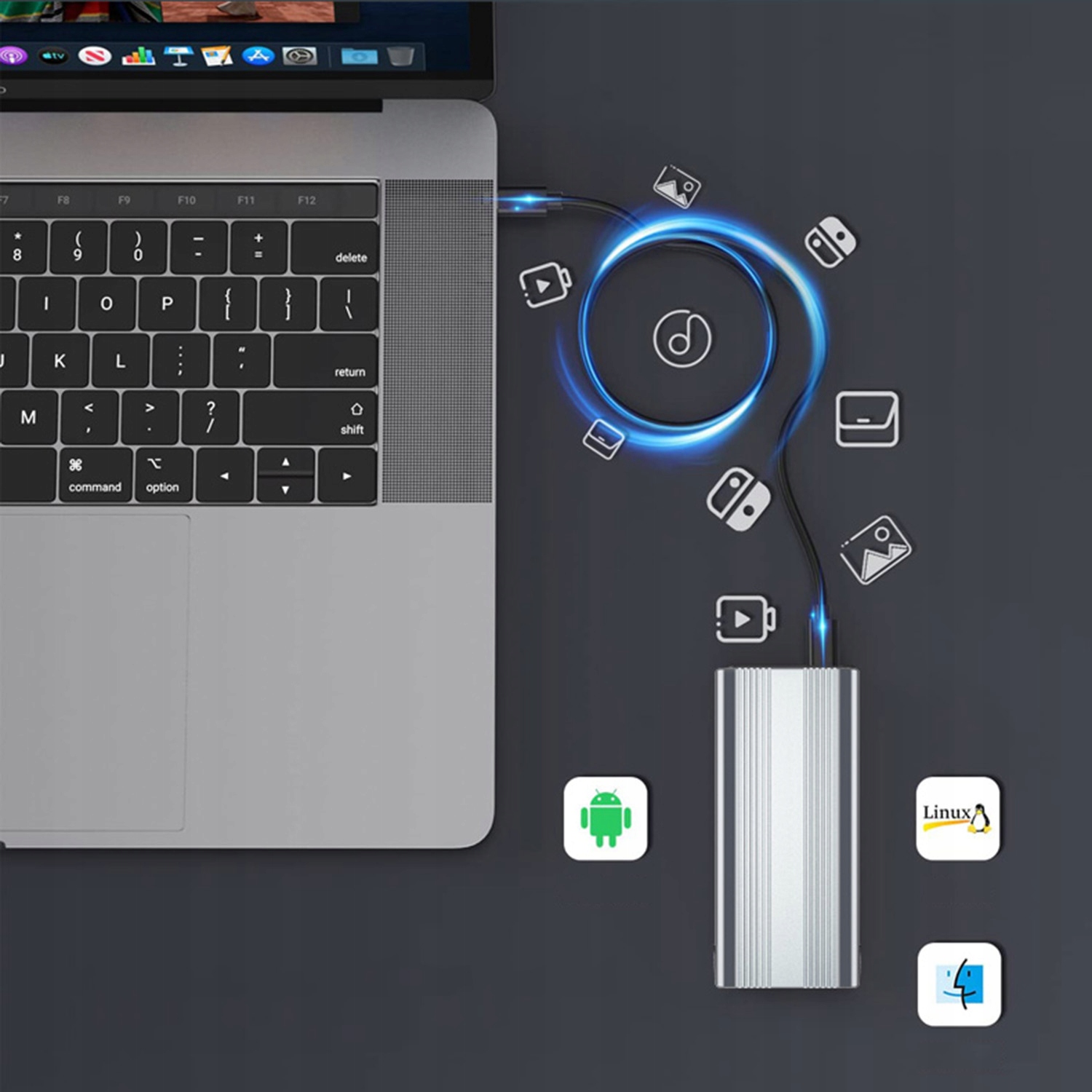 Корпус диска можно подключить как к порту USB-C или Thunderolt 3.0/4.0, так и к стандартному порту USB 2.0/3.0.
