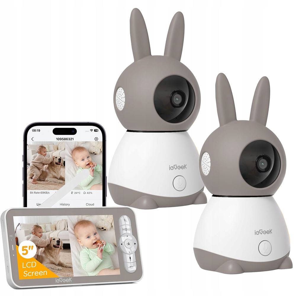 Электронная няня с 2 шт. Роторная камера Wi -Fi 2K 3MPX 5.0 '' LCD 4X Zoom