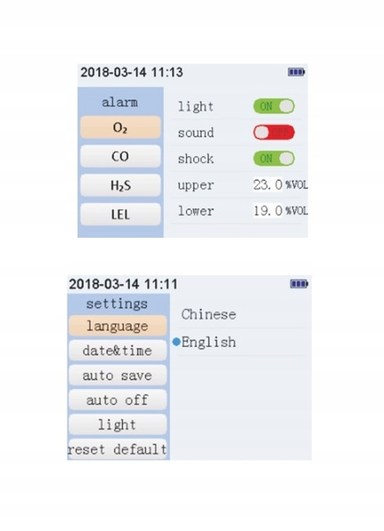 4. Форма представления данных:ЖК-экран: данные в реальном времени и состояние системы, другие: светодиодный индикатор тревоги, звуковой сигнал и вибрация.