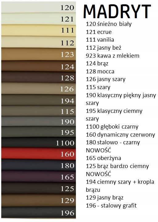 20 - белый, 21 - экрю, 22 - бежевый, 23 - холодный бежевый, 24 - капучино, 25 - светлый кофе с молоком, 28 - коричневый, 29 - темный шоколад