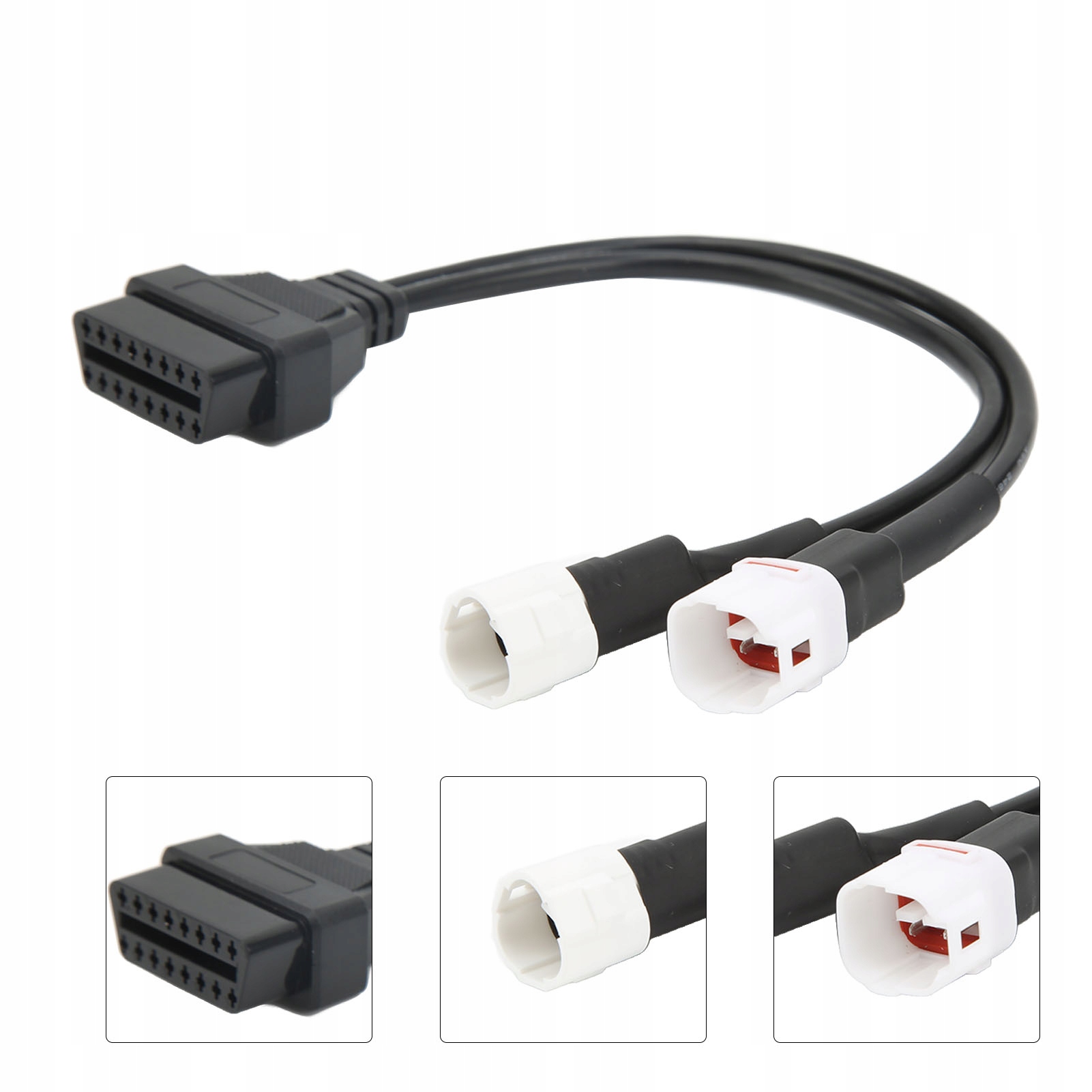 Дизайн 2 в 1: адаптер OBD2 на 3-контактный и 4-контактный диагностический разъем для обнаружения неисправностей мотоцикла, стабильная производительность и профессиональная надежность.