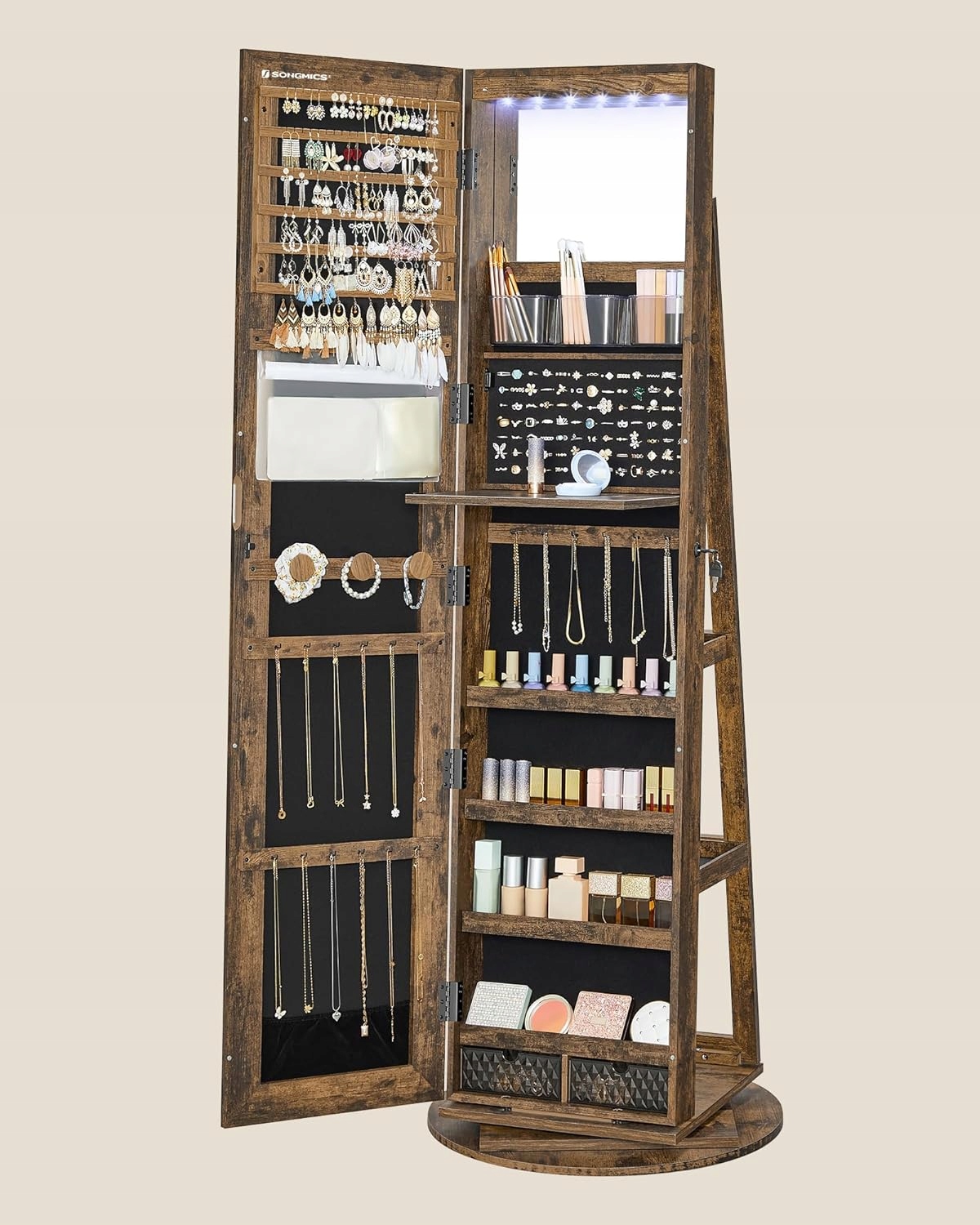 Элегантный и функциональный вращающийся шкаф для украшений, идеально подходящий для спальни, гардеробной, ванной комнаты или прихожей.