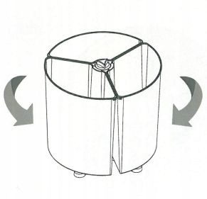 Он выполнен в форме сектора круга. Подвешивание отделений на подставке позволяет им свободно вращаться и обеспечивает легкий доступ к ним, несмотря на размещение корзины в шкафу.