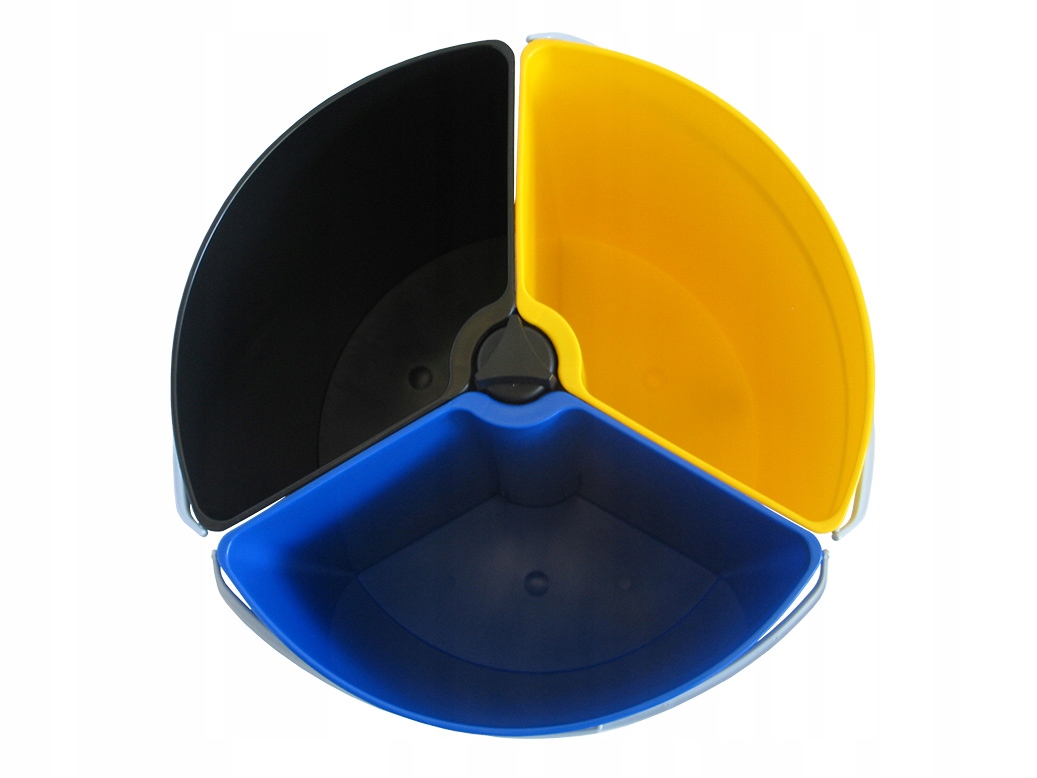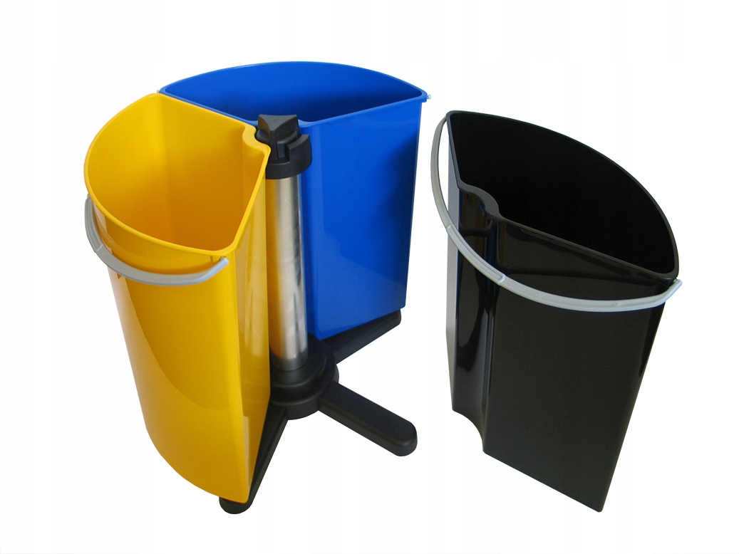- 3 контейнера (коричневый — биологический, синий — бумажный, желтый — пластиковый)
