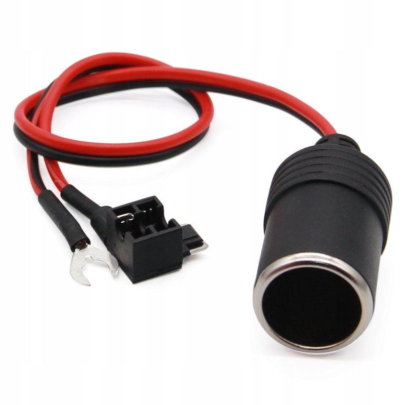 Универсальное гнездо прикуривателя на кабеле длиной примерно 30 см. Позволяет подключить дополнительный разъем прикуривателя без физического вмешательства в монтаж автомобиля (подключение в блоке предохранителей).