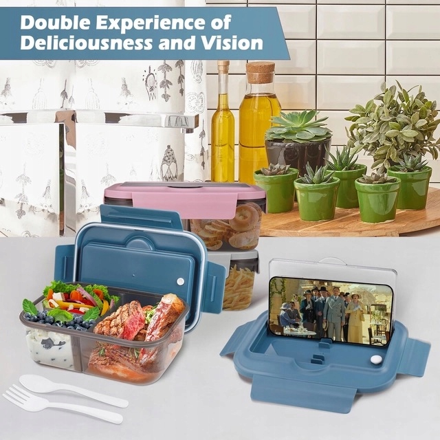 разумная конструкция: В верхней части ланча -коробки есть независимая камера для хранения столовых приборов, которая содержит вилку и ложку, а также может использоваться в качестве держателя сотового телефона. Верхняя крышка укреплена резиновой прокладкой, которая имеет хороший эффект герметизации и эффективно предотвращает проливание или протекание пищи. Двухслойный дизайн не занимает много места и идеально подходит для небольших мешков и может быть перенесен повсюду.
