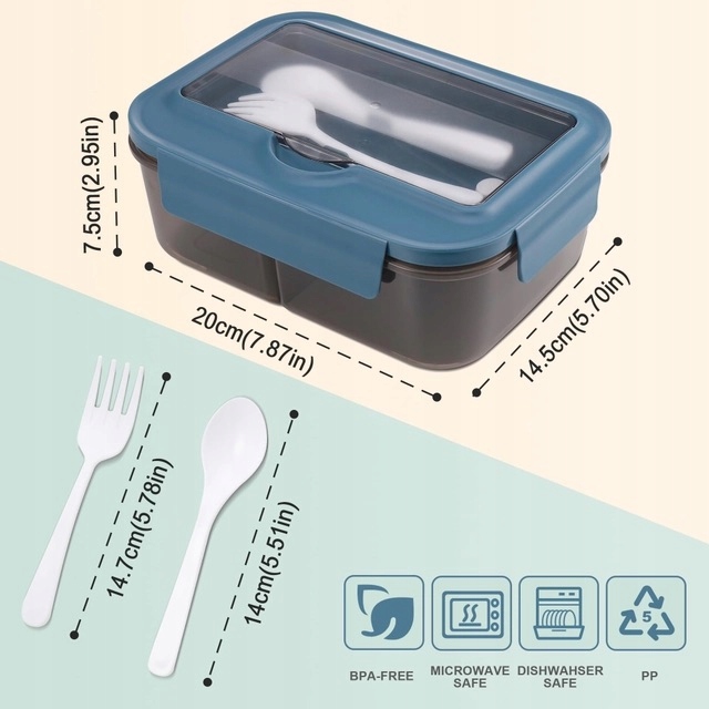 Безопасной материал: b> ланч -коробка изготовлен из высококачественного материала PP (PP Class 5) Неоксичный, бездонный, прочный и дуральный. Это безопасная коробка для ланча многоразового, гладкого, без поверхностных заусенцев, идеально подходящая для детей и взрослых.