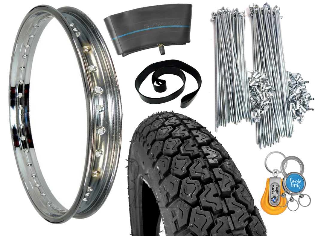 ШИНА 3.00-19 4PR AWINE, ТРУБКА И ФАРТУК, ХРОМ ОБОД КОЛЕСА + НАБОР СПИЦ 185 мм (18 шт.) + 220 мм (18 шт.) С СОСКАМИ ДЛЯ WFM и автомобильного или именного брелока
