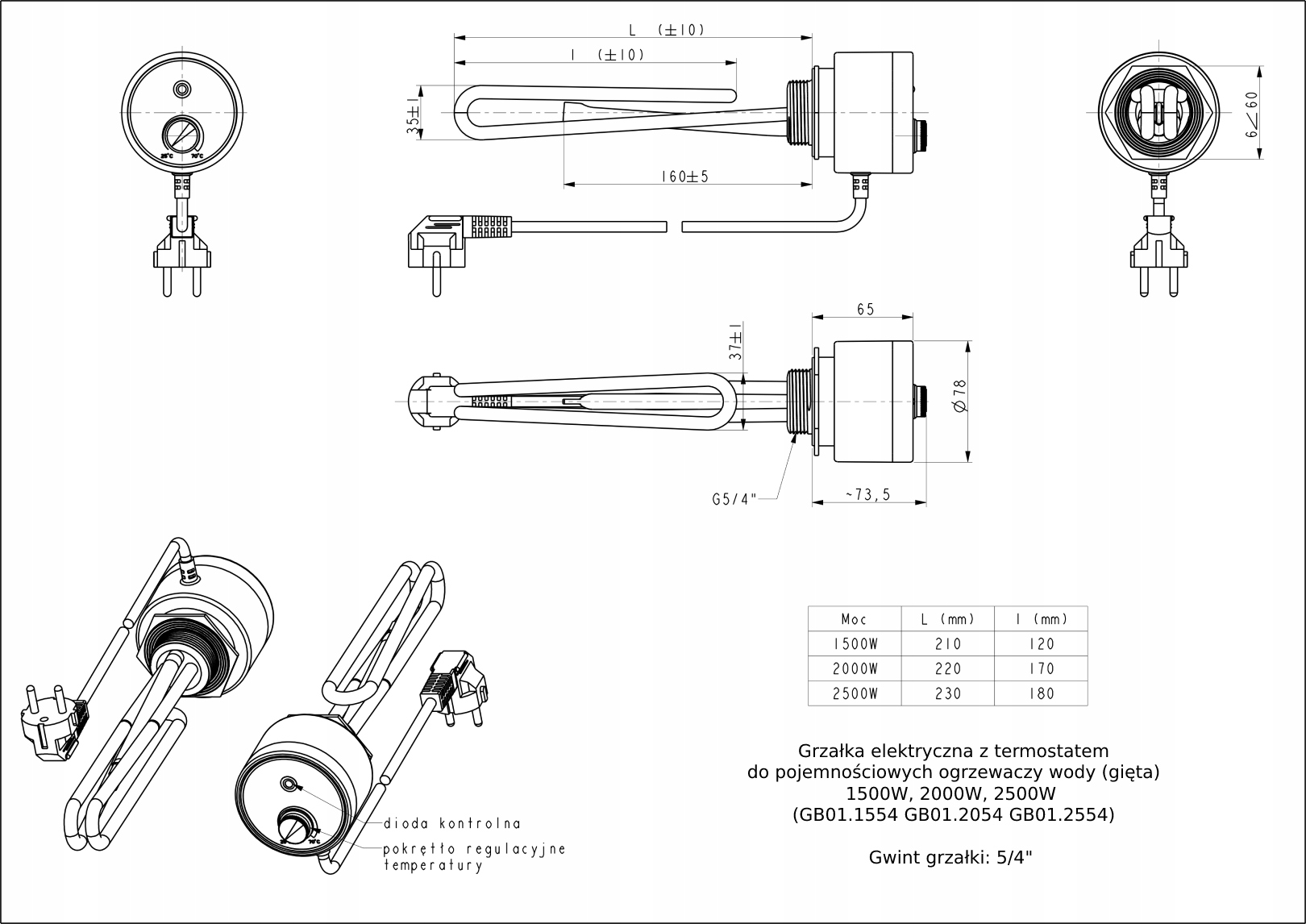 - ДЛИНА НАГРЕВАТЕЛЬНОГО ЭЛЕМЕНТА L (± 10 мм) 210 (мм)