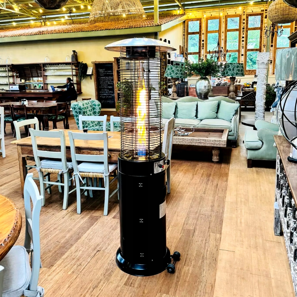 Нагреватель будет работать не только в саду или на террасе, но и в ресторанах, гостиницах, кафе и мероприятия на свежем воздухе. Мобильность и мощность газа позволяют использовать прибор даже там, где нет доступа к электричеству.