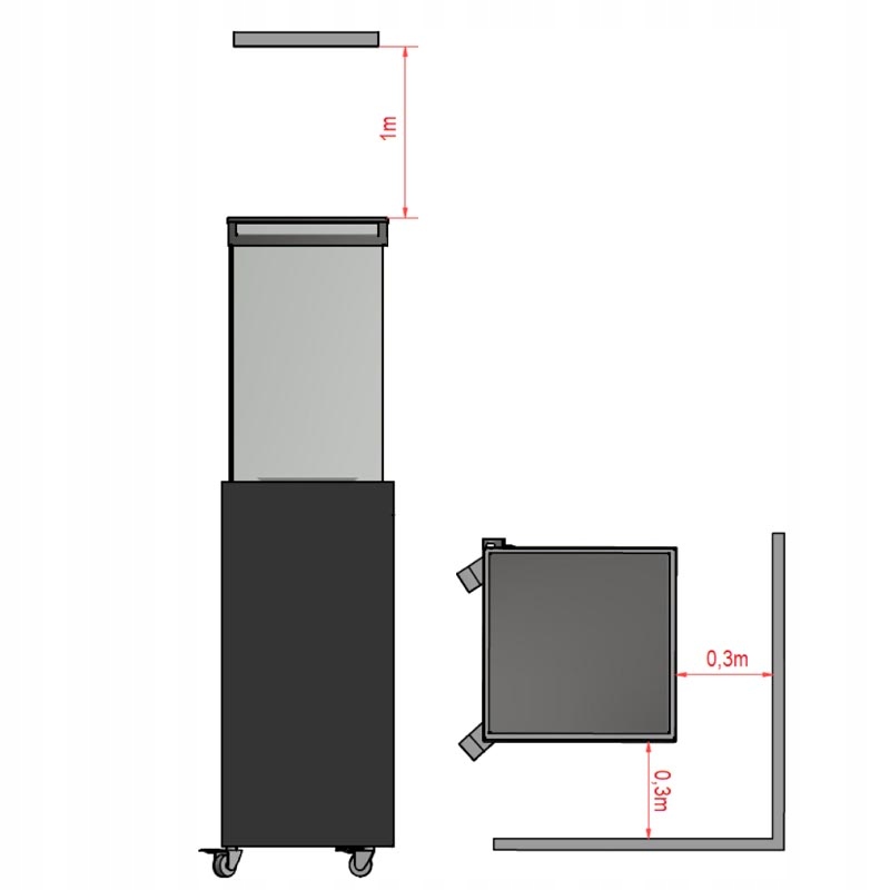 - Размеры: высота 149,5 см с колесами (142 см без колес) х ширина 36 см х глубина 36 см