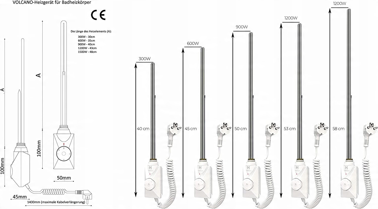 Электронагреватель VOLCANO – это модель, предназначенная для радиаторов для ванных комнат и комнат (например, алюминиевых, колонных или чугунных). Это идеальное решение для сушки полотенец или обогрева помещения в течение всего года.