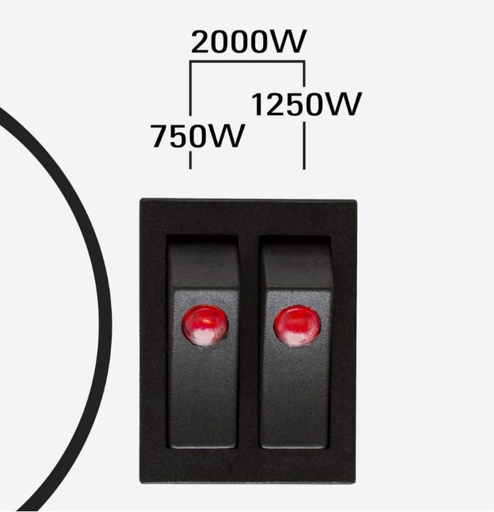 - 3-ступенчатая регулировка мощности 750/1250/2000 Вт