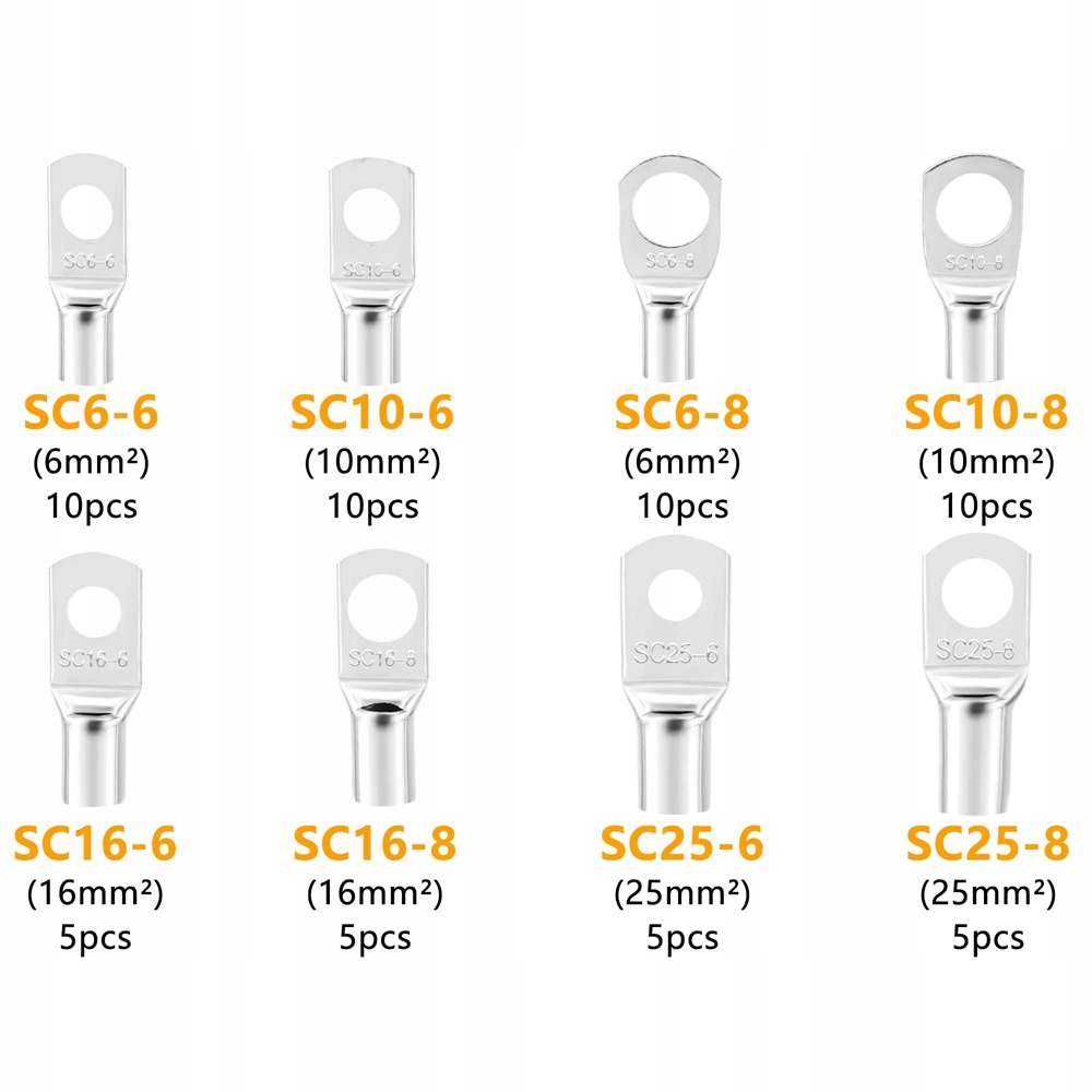 🔗В комплект входят обжимные клещи и 60 медных кольцевых клемм 8 разных размеров, что делает его идеальным для различных электротехнических проектов.