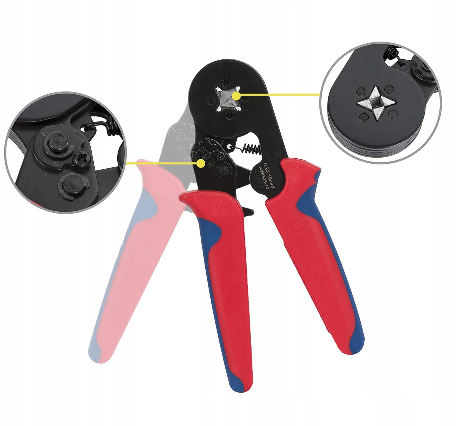 Этот продукт представляет собой практичный инструмент для обжима изолированных и неизолированных наконечников, одинарных и двойных наконечников. Инструмент оснащен храповой системой, поддерживающей зажим, благодаря чему нам не нужно прилагать много усилий при работе.