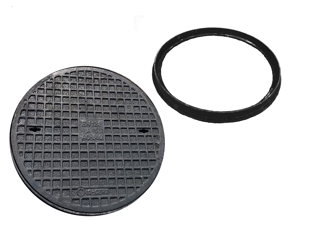 Чугунный люк с рамой, круглой, защищенной черным защитным слоем. Хэтч, сделанный из сильного и прочного чугуна, в соответствии с EN-124.