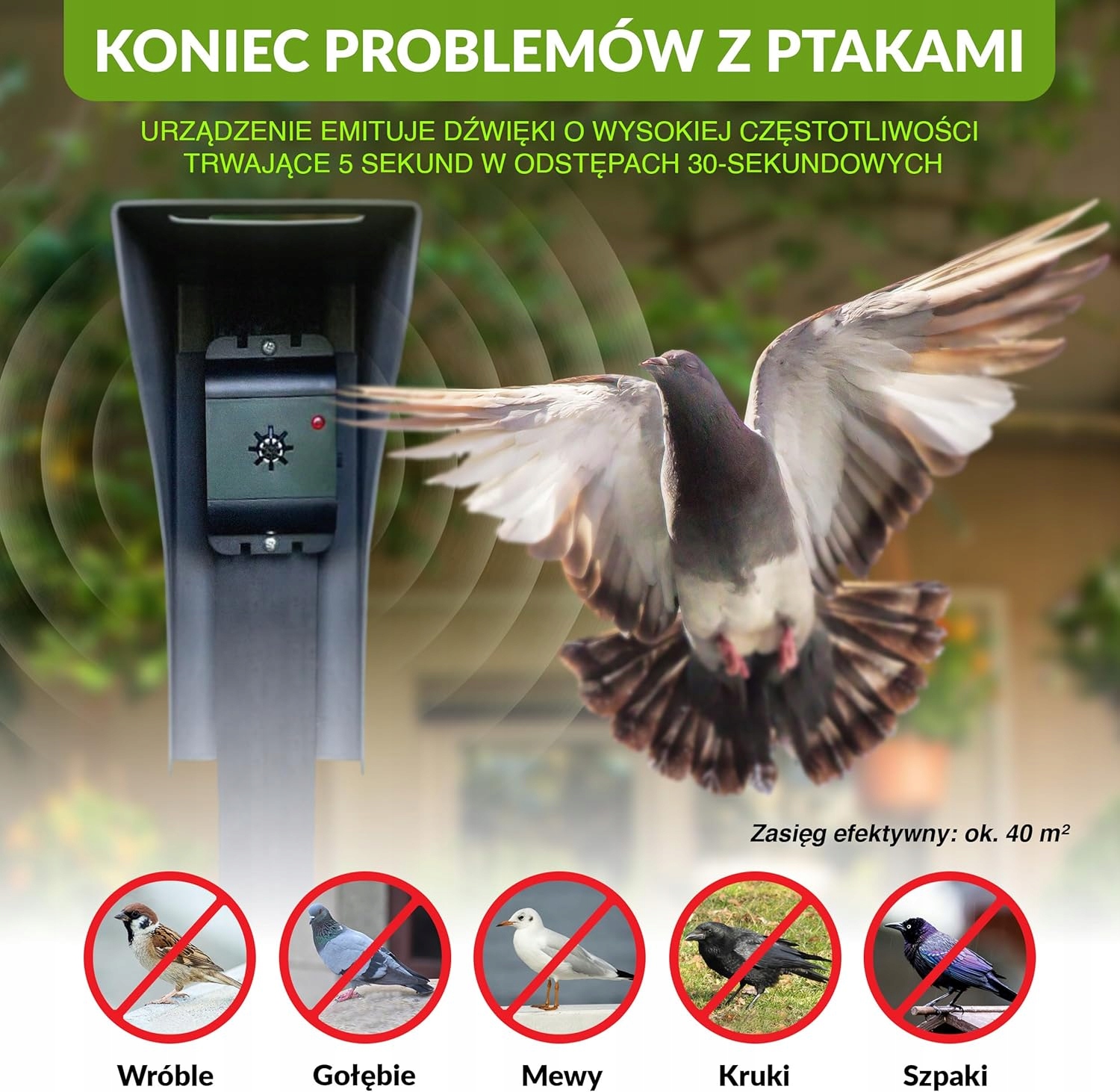 Птичий помет, гнезда и поющие жильцы зачастую являются серьезной неприятностью для многих жителей. Наш отпугиватель эффективно защищает от всех видов птиц, благодаря чему нежелательные гости остаются на расстоянии.