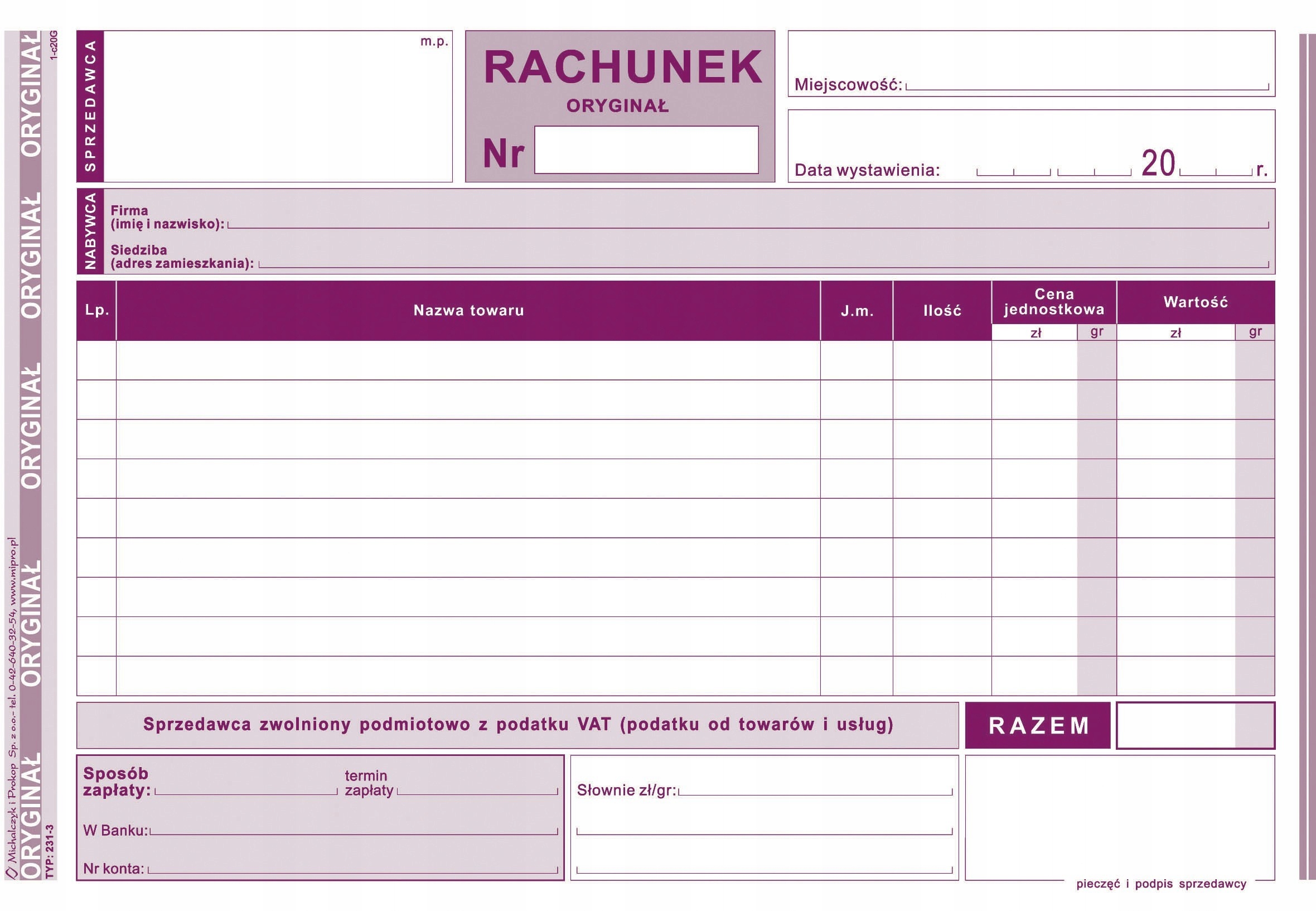 Счет для лиц, освобожденных от НДС А5 тип 231-3