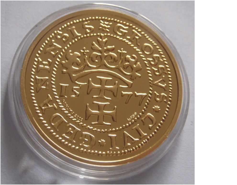 Осадные пенни Гданьск 1577 года — серебряная реплика с позолотой, РЕКОМЕНДУЮ @