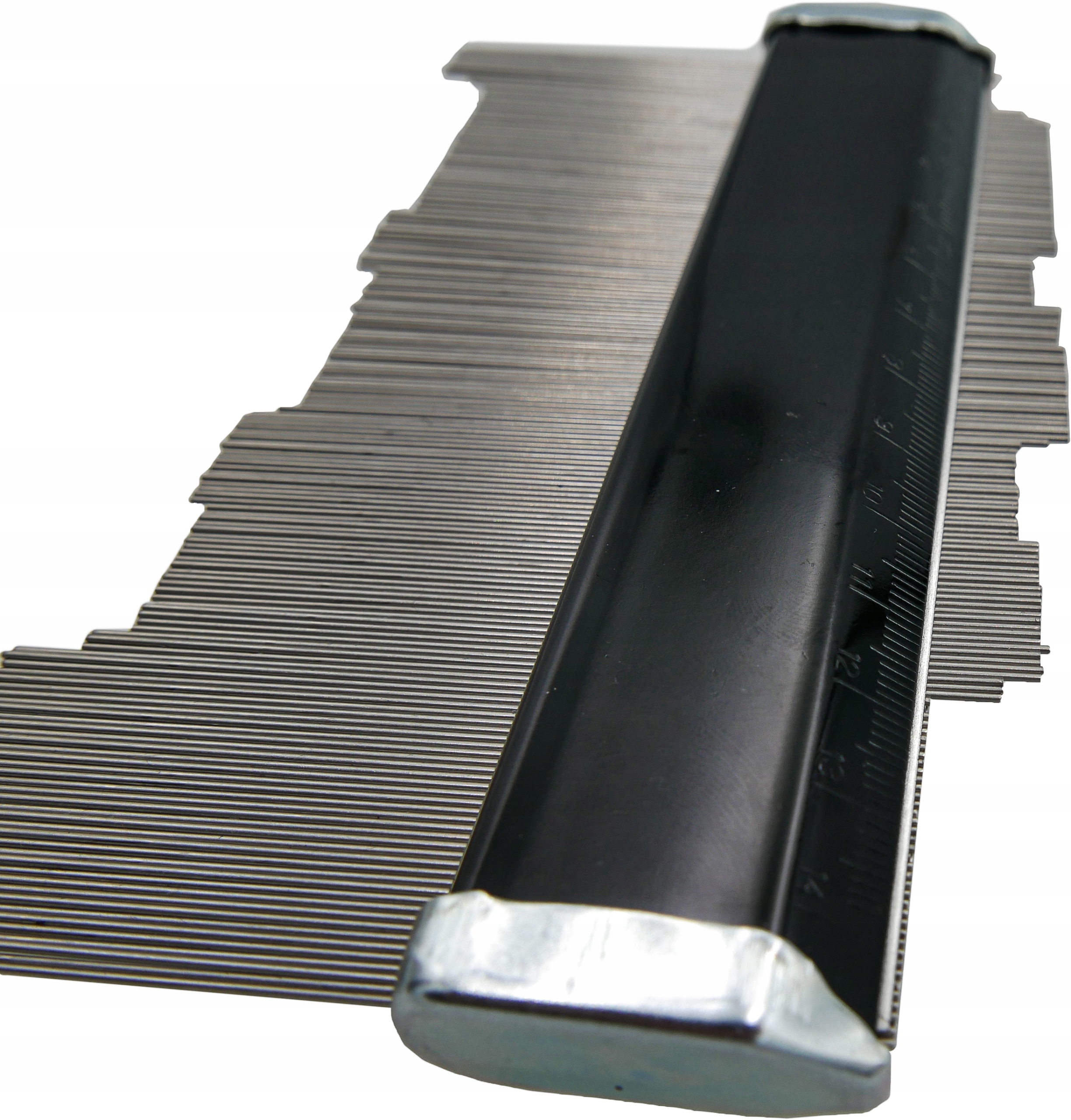Для снятия слепка любого профиля неправильной формы. Помогает при укладке ковриков и напольных покрытий, изготовлении полок, столешниц, токарной обработке и т. д. Изготовлено из роликов из нержавеющей стали.