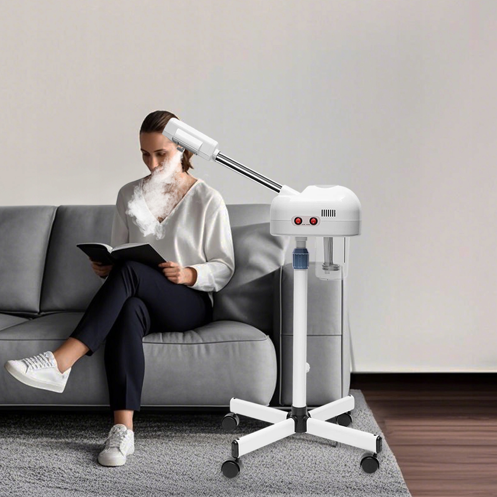 Озоновый отпариватель для лица 2 в 1: Очистите кожу с помощью этого стационарного отпаривателя для лица. Он имеет режим двойного действия, в котором для производства насыщенного озоном пара используются отрицательные ионы озона и кипящая вода. Озон растворяет грязь и кожное сало, попавшие в поры, повышая уровень увлажнения и делая кожу мягкой на ощупь.
