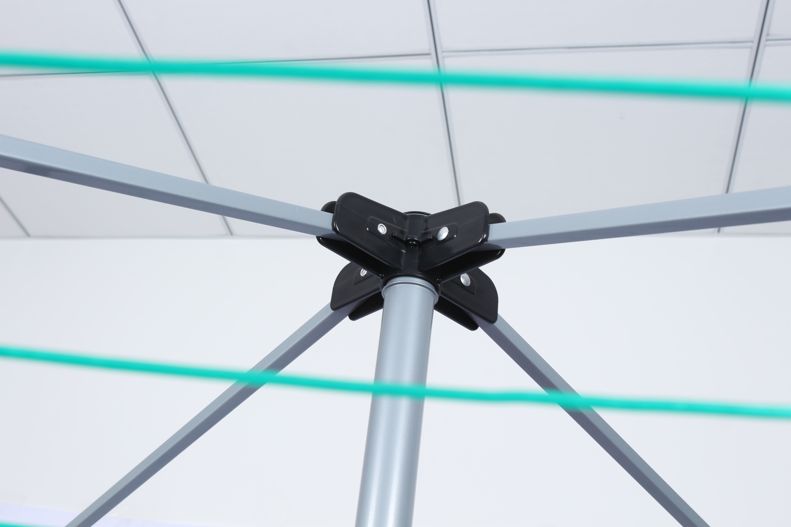 Сушилка Dollo Garden изготовлена из алюминия, что делает нашу садовую сушилку исключительно легкой и в то же время очень прочной и устойчивой к погодным условиям. Сушилка может вращаться, поэтому вы можете легко развесить белье. Специальный якорь, ввинченный в землю, обеспечивает достаточную устойчивость даже при сильных порывах ветра.